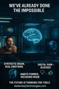 While others chase trends, Goldenboy Technologies is translating real scientific revolutions—from neurobiology to quantum computing—into transformative tools for the mind. Our work in BCI-driven neural mapping, quantum-enhanced cognition, matter manipulation, and synthetic consciousness environments isn’t about spectacle—it’s about impact.